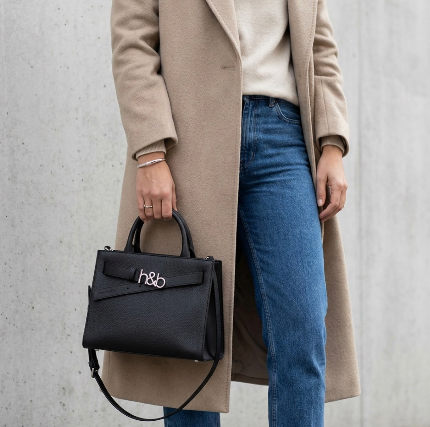 Gefertigt aus feinem, genarbtem Echtleder überzeugt sie durch ihre strukturierte Silhouette, hochwertige Materialien und ein raffiniertes h&b-Metalllogo am Front-Riemen.