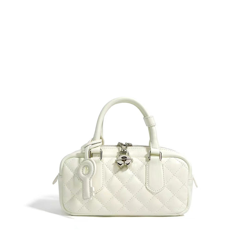 Das butterweiche, gesteppte Leder verleiht der Tasche einen hochwertigen Designer-Look, während die stabilen Griffhenkel und das strukturierte Innenfach für Funktionalität sorgen.